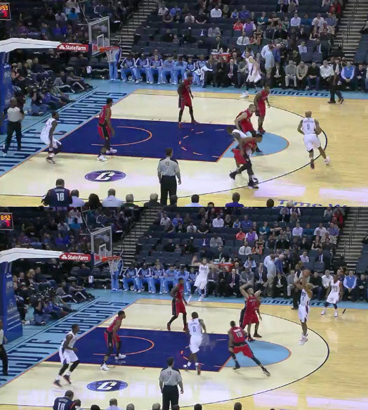 *Made two. Henderson comes off ball screen (Gay defending), pulls up baseline jumper with Valanciunas turned around, basically screening Gay from recovering.