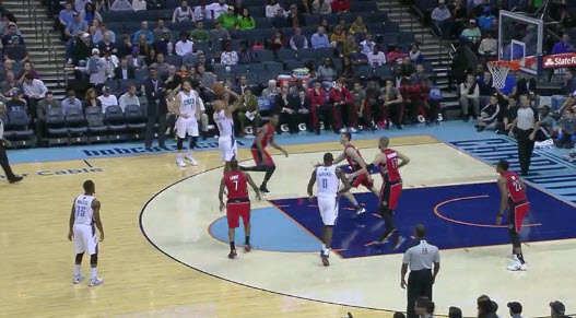 Note that if Henderson had better vision (he clearly thought his shot was going to be contested), he had MKG wide open for a drive, or to make a touch-pass to a wide-open Kemba Walker up top.