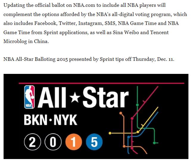 - As per nba.com: For the first time, the NBA All-Star ballot features all NBA players.