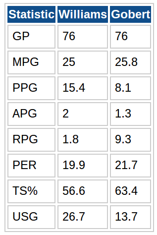 Altogether, despite the weaker offensive production and flimsy technicality of Gobert’s qualifications for “Sixth Man”, his defensive impact is too great to ignore. For that, Gobert gets the edge over Williams, who finishes second in my imaginary ballot. Sorry, namesake guard.