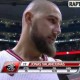 Here is our hero turning the ball over, recovering to block the ensuing attempt, almost injuring himself, and them prompting Jack Armstrong to do a Dikembe Mutombo impression.  At press time, Jonas Valanciunas was 4-5 FG for 8 points and 2 rebounds with 3:20 left in the first quarter.  Check the Twitter for the latest.