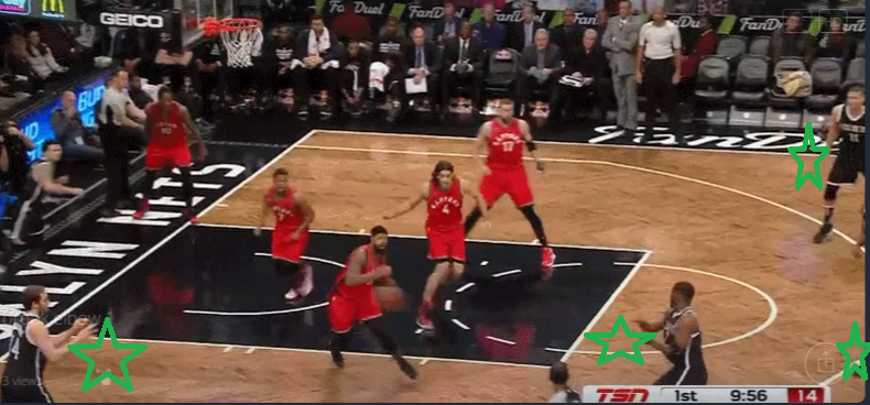 Credit to the Raptors for figuring this one out, and credit to the Nets for a smart play that makes good use of the speedy Larkin and the gravity Lopez has out to the top of the paint.