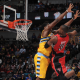 The game was somewhat subdued after that. We had to witness Andre Drummond go 1/9 from the free-throw line, and then oddly fouling out. Odd, because Drummond didn’t receive his first foul until the third quarter. His struggles were threefold. Being fouled and missing free-throws at such an impotent rate strains you mentally and batters your confidence. It didn’t help that Valanciunas was working diligently to get the better of him on the boards; and Biyombo especially had a monstrous game down-low. By the end of it, Drummond was visibly frustrated.