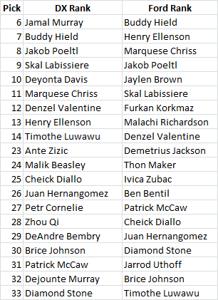 Here’s who Draft Express and Chad Ford have ranked playersĀ in the ranges Toronto will pick, assuming they don’t move one or both of the selections (which I’d imagine is entirely on the table, even if it’s a case where the Raptors make the pick but don’t officially trade it until after the moratorium ends in July).