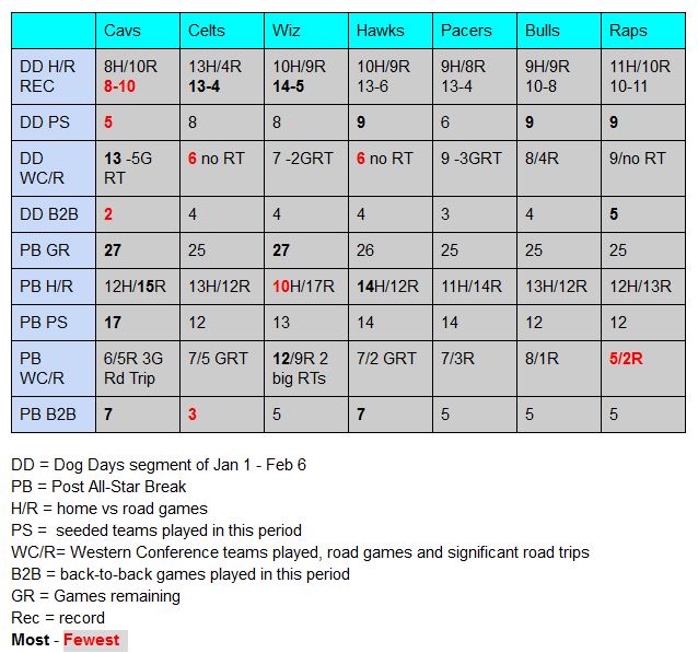 The period in the NBA schedule which covers Boxing Day through the All-Star break is referred to as the ‘Dog Days’. It’s no coincidence most players and teams despise this portion of the schedule. At season start there is the excitement of a new campaign, post All-Star break teams are refreshed and eager to get back to business and April offers inspiration to finish strong in preparation for the post season. But, the 6 weeks leading up to the break are when teams/players are dealing with nagging injuries, have undertaken long alternate coast – road trips (for the most part), and dealt with the natural let down that comes after the holidays.