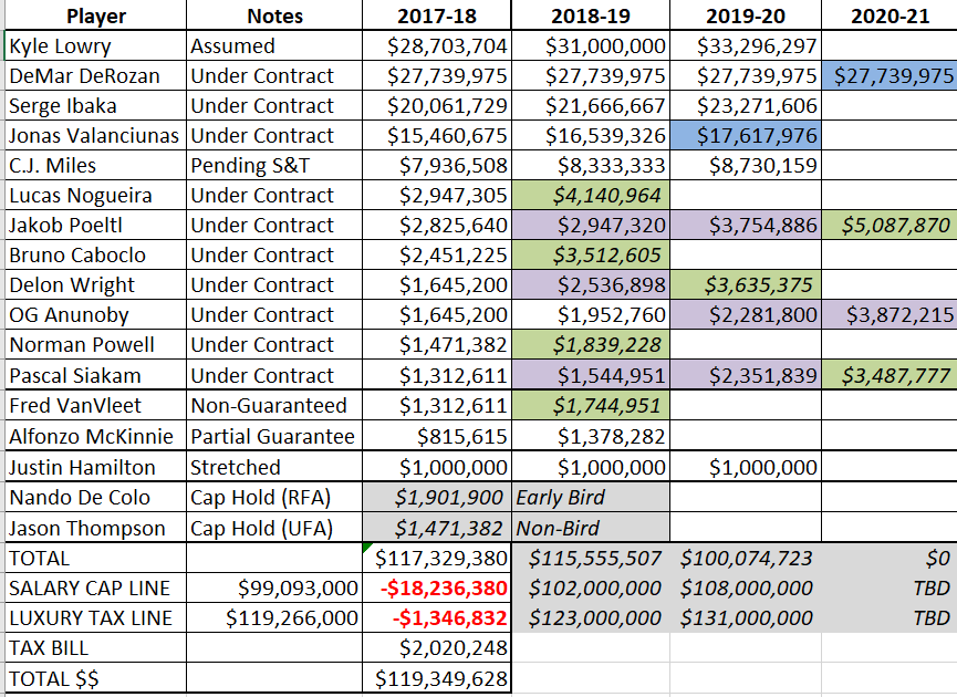Here’s a look at the Raptors’ cap sheet right now: