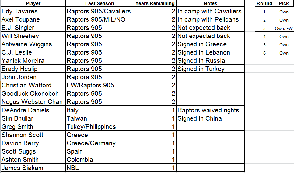 This could kick off what should be an offseason heavy on turnover for the 905. Will Sheehey and E.J. Singler are not expected back with the team, and several of the other high-end names have already signed overseas. Here’s how the 905’s returning player rights list looks entering the summer: