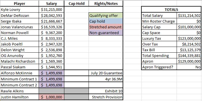 The Raptors have the following restricted free agents, with their cap holds highlighted: