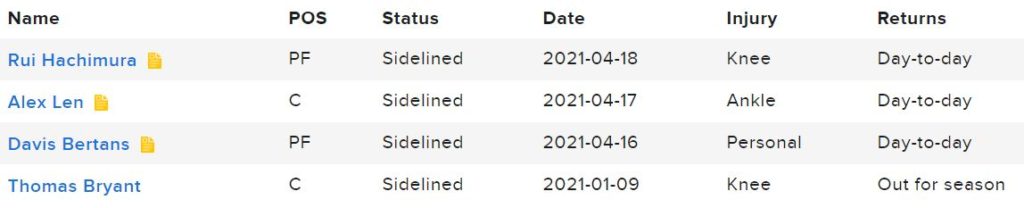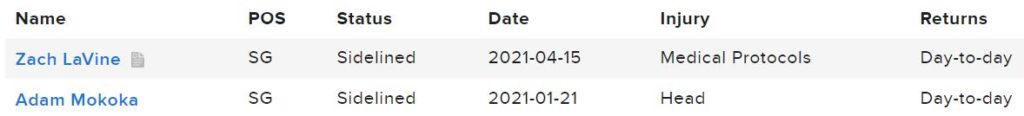 So the Bulls have the biggest issue with Lavine being out, and depending on what you believe of the Raptors, they’re pretty much healthy and so are the Wizards, though Len and Bertans have been key contributors for them, but both are game-time decisions.