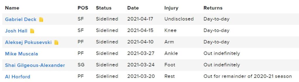 Here’s the Thunder depth chart in case you don’t watch them too much:
