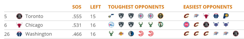 If strength of schedule is hard to discern, no worries, the internet is a great thing and we got Tankathon: The Raptors have the toughest schedule: