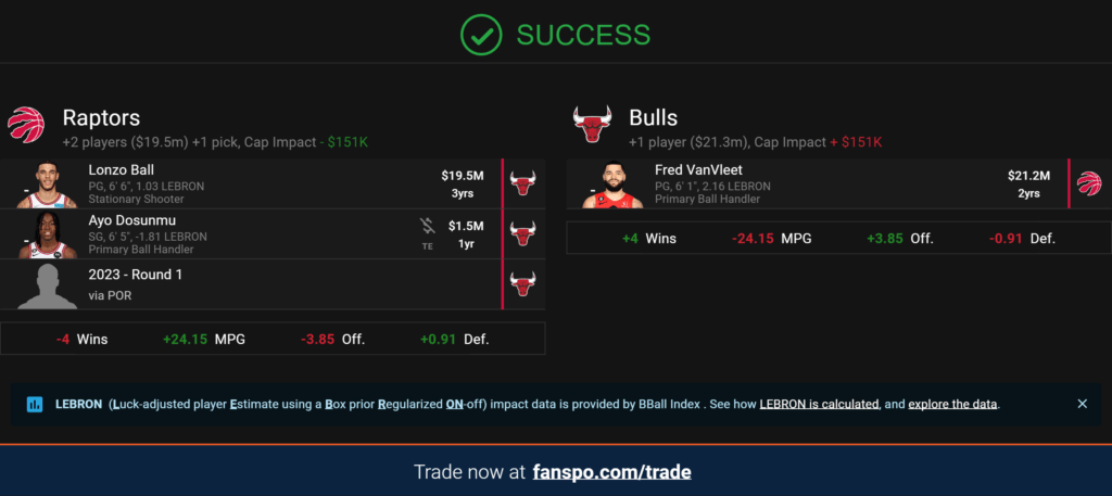 That would be tragic. The chance that he might is worth the upside. Dosunmu and Portland’s pick this year is compensation in the event he doesn’t. Dosunmu can’t shoot, great, I know, but he’s another sophomore with lots of upside that also gives Toronto mucho flexibility regardless of Ball’s future.