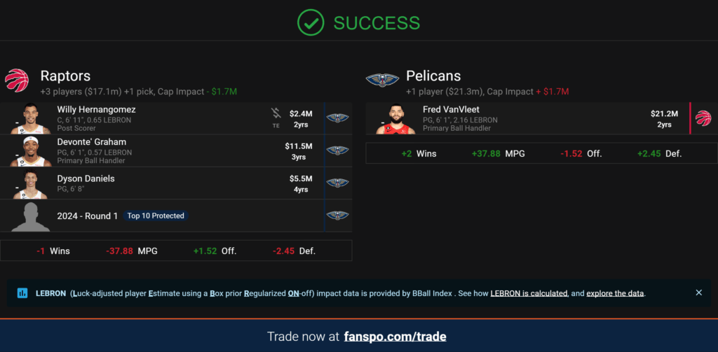 Still, should they want to consolidate and surround Zion and Ingram with more shooting and playmaking, Freddy could fit nicely. A finishing group of FVV, CJ, Zion, Ingram, and Herb Jones/Trey Murphy is small as Hell, but an offensive nightmare from Hell too.